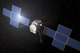Intuitive Machines’ Nova-C lander, named ‘Odysseus,’ displayed prior to encapsulation inside a pair of SpaceX Falcon 9 payload fairings. Image:…
